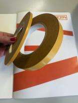 Oboustranně lepící páska na bázi syntetické pryže pro lepení papíru, kartonů, krabic, složek, papírových tašek, snadno se trh...
