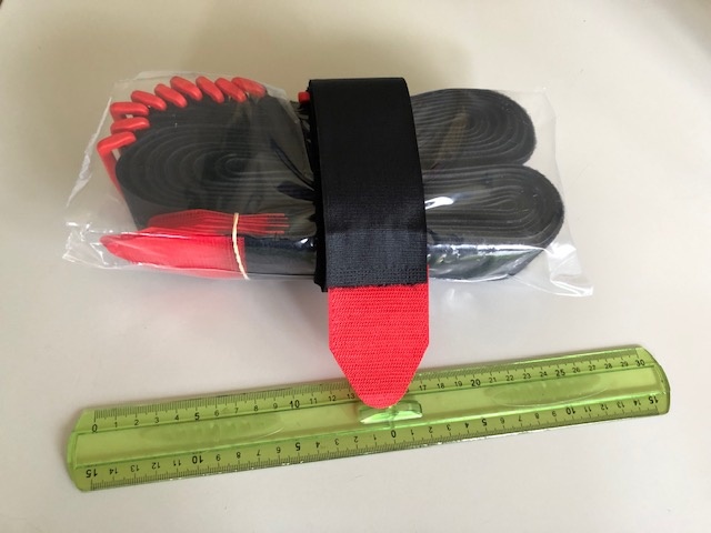 Stahovací pás černý, s červeným očkem a jazýčkem, šířka 50mm a délka 810 mm Stahovací pásek pro všeobecné použití je vyroben ze suchého zipu Velcro, materiál je polyamid, odolný teplotě, vodě, počasí, odolnost UV střední. Stahovací pásek je vhodný pro stahování kabelů, pro balení, jako doplněk do aut nebo na kolo k připevnění různých předmětů, pro sportovní činnost. Výkresy